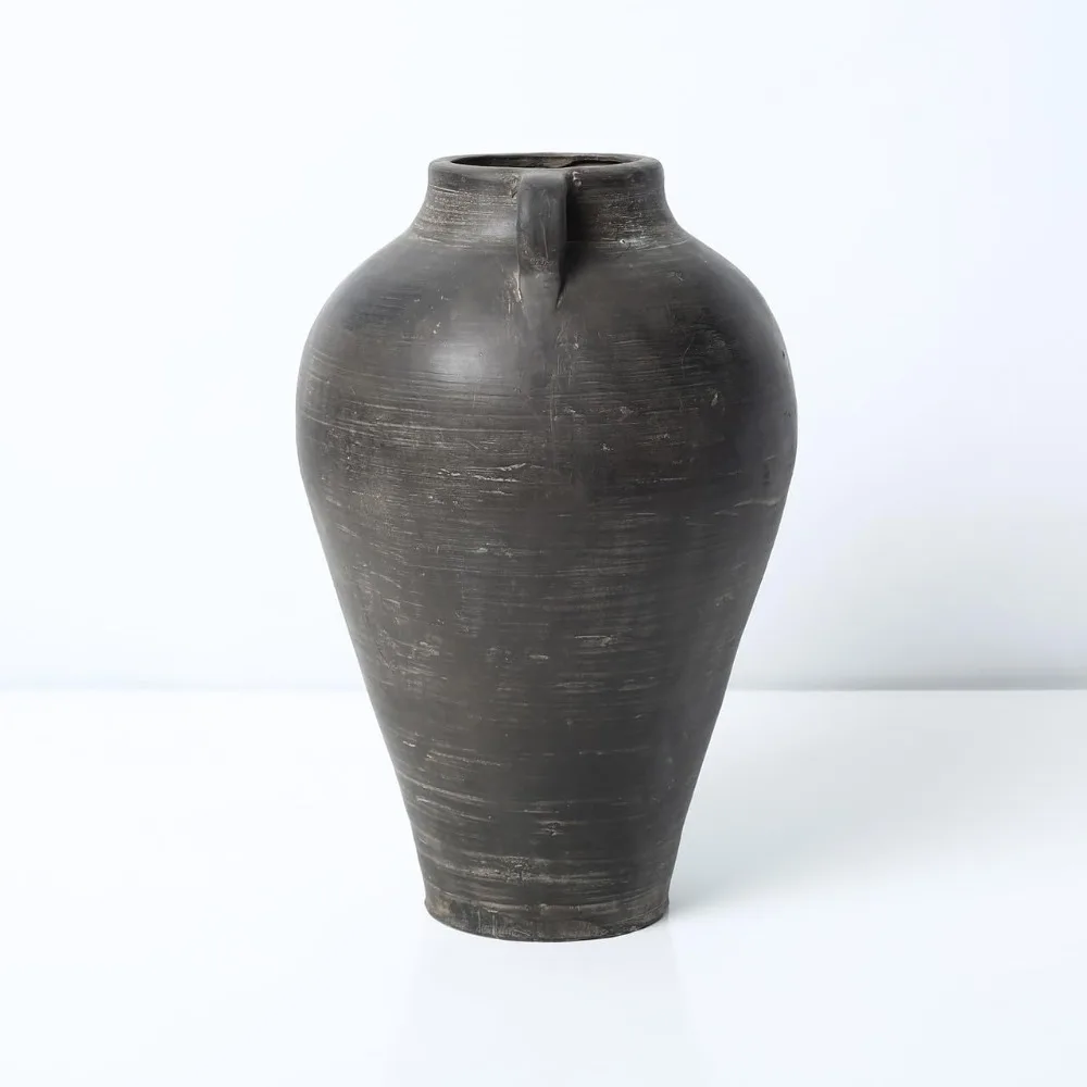 - DESIGN & LOOK: The vintage vase features a charcoal gray design with handles; Perfect for adding a decorative touch to any space; Its rustic style enhances farmhouse decor; Ideal for display or functional use, adding elegance to your home.