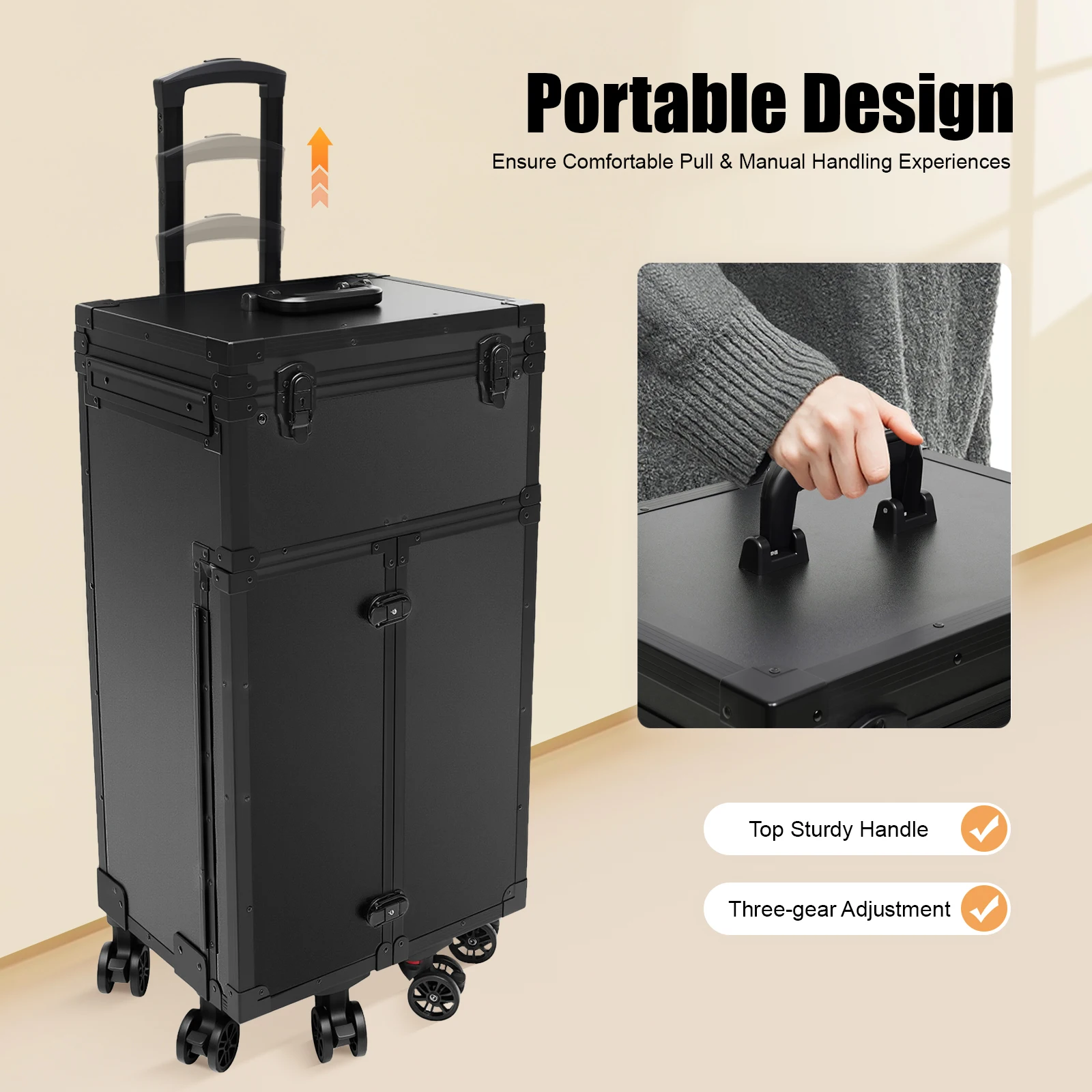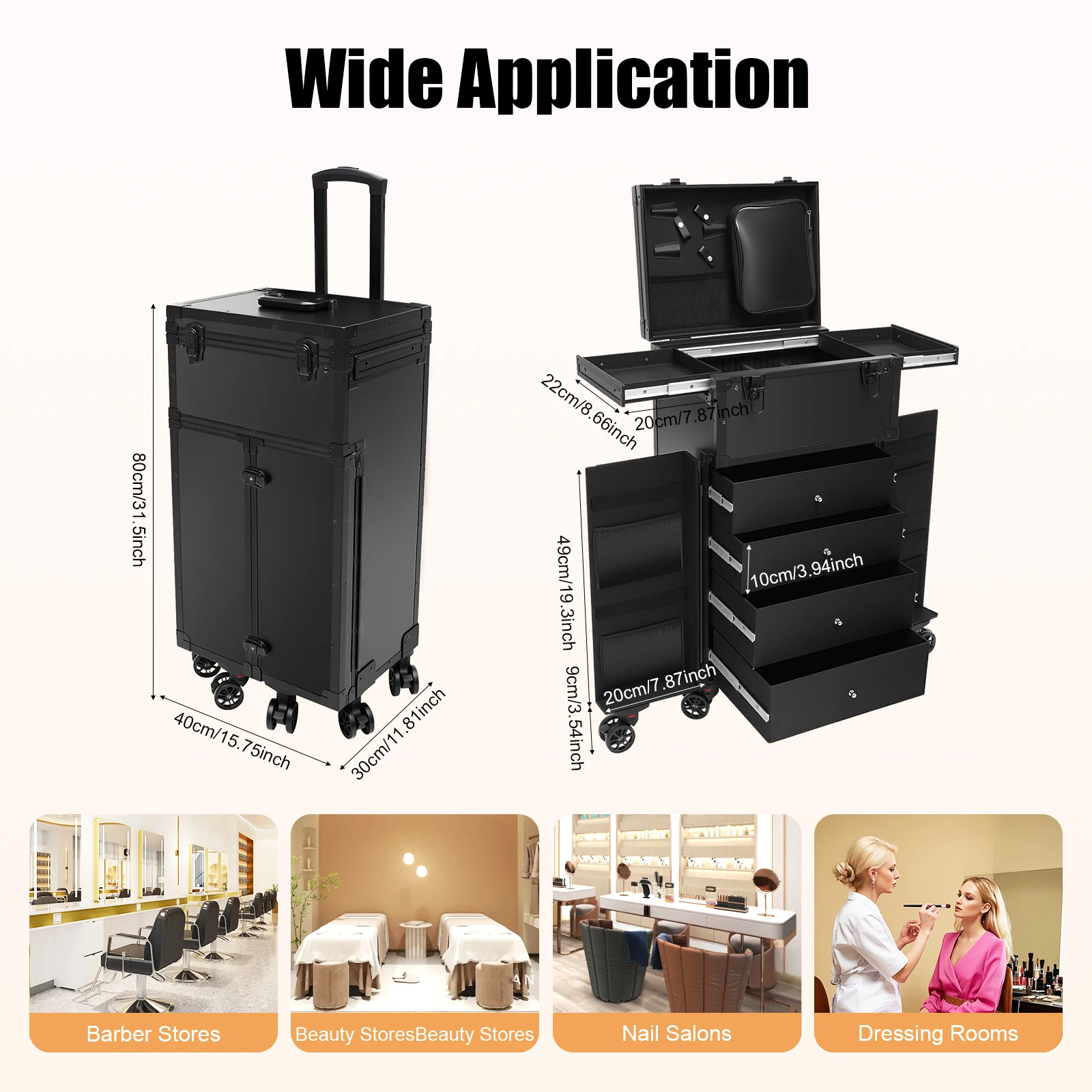 31.15inch Professional Rolling Makeup Case 4 Drawers Pro Makeup Artist Cosmetic Train Case Makeup Organizer Travel Case