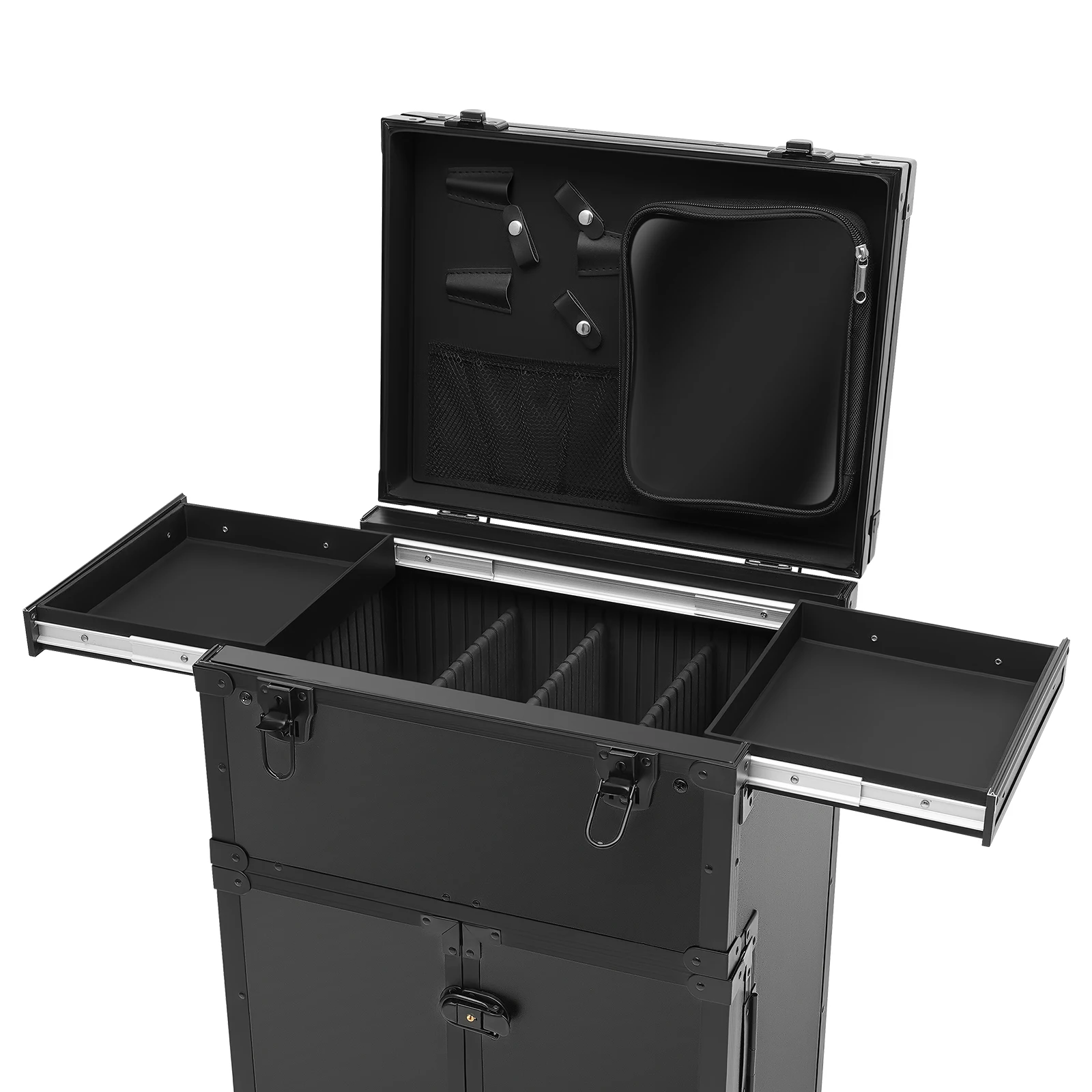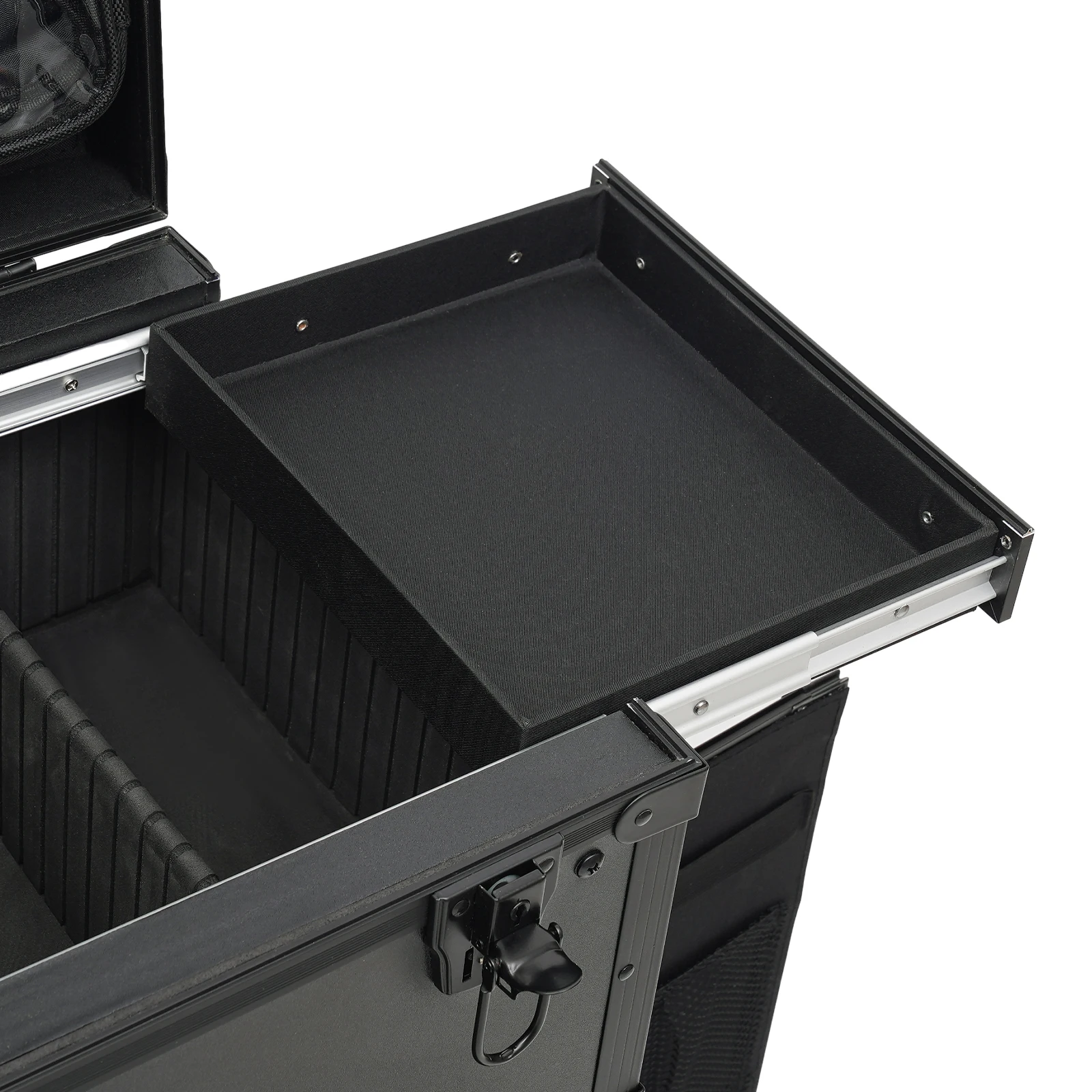 Whether you're working or traveling, a professional makeup case will be a great convenience. This makeup case is made of high-quality aluminum alloy and ABS that is strong and durable. The top scissor groove and a small bag, the middle movable partition, the storage box under the partition, the lower 4 pull-out drawers, and side door pockets allow you to sort and store items. The strong load-bearing capacity allows you to store items with confidence. In short, it is the ideal choice for professional makeup artists and beauticians.
