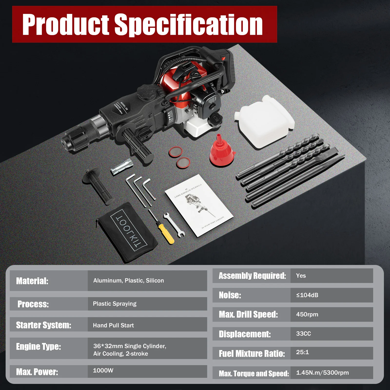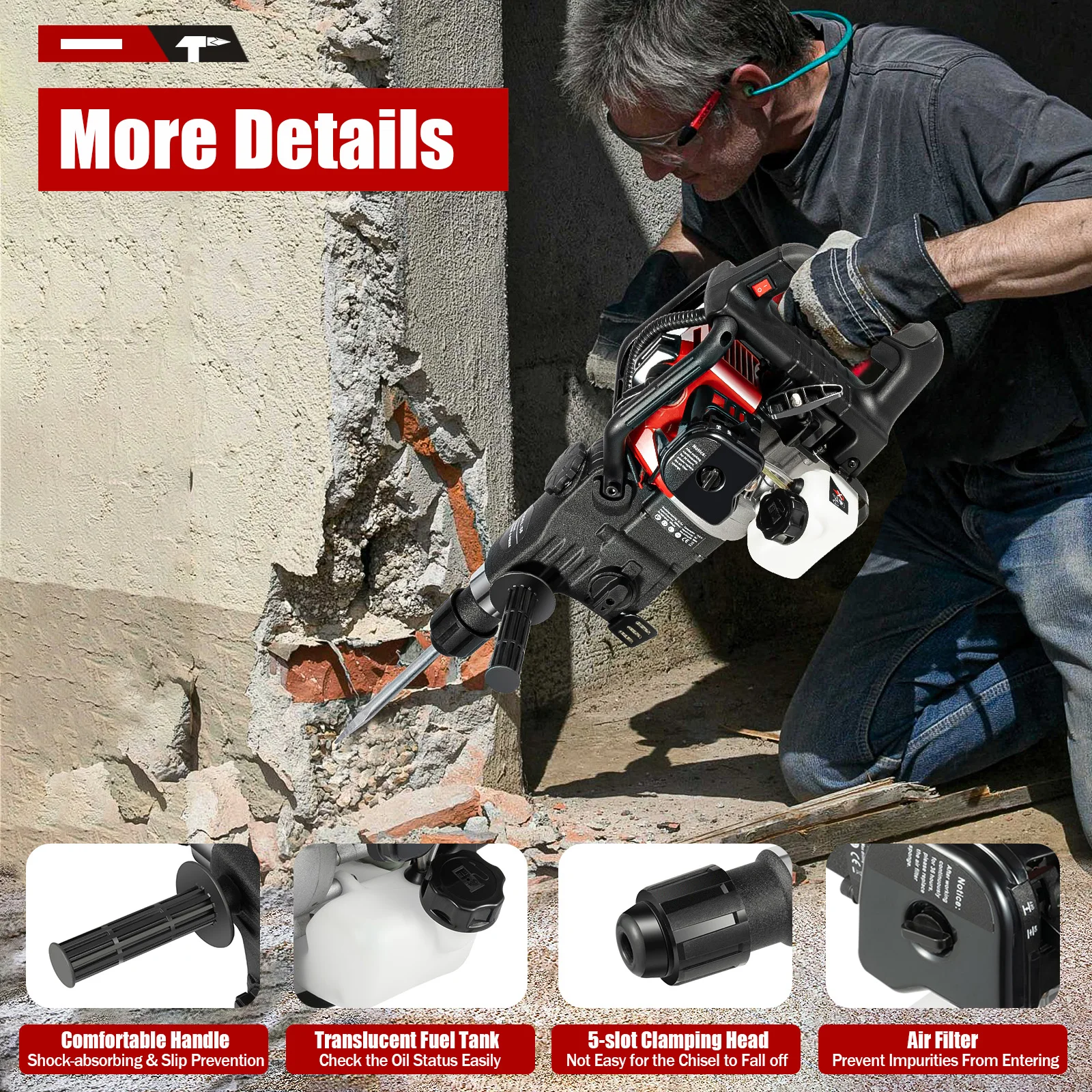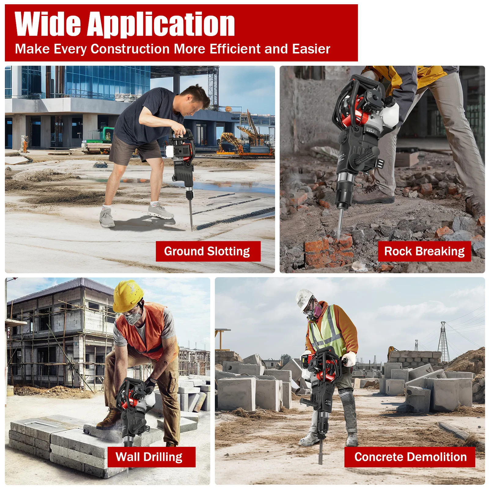 33CC Demolition Jack Hammer Hand Pull Start Single Cylinder Air Cooling, 2-stroke for Drilling Crushing