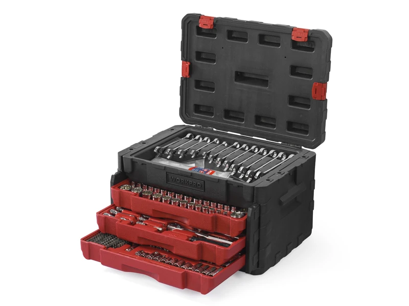 ANTI-CORROSION CHROME FINISH: All the mechanics tools in WORKPRO Tool Set are made with a fully polished, heat-treated, triple chrome plated finish which protects tools against corrosion. No need to worry about leaving your tools kit alone outdoors or in the rain as our socket set is rust-resistant