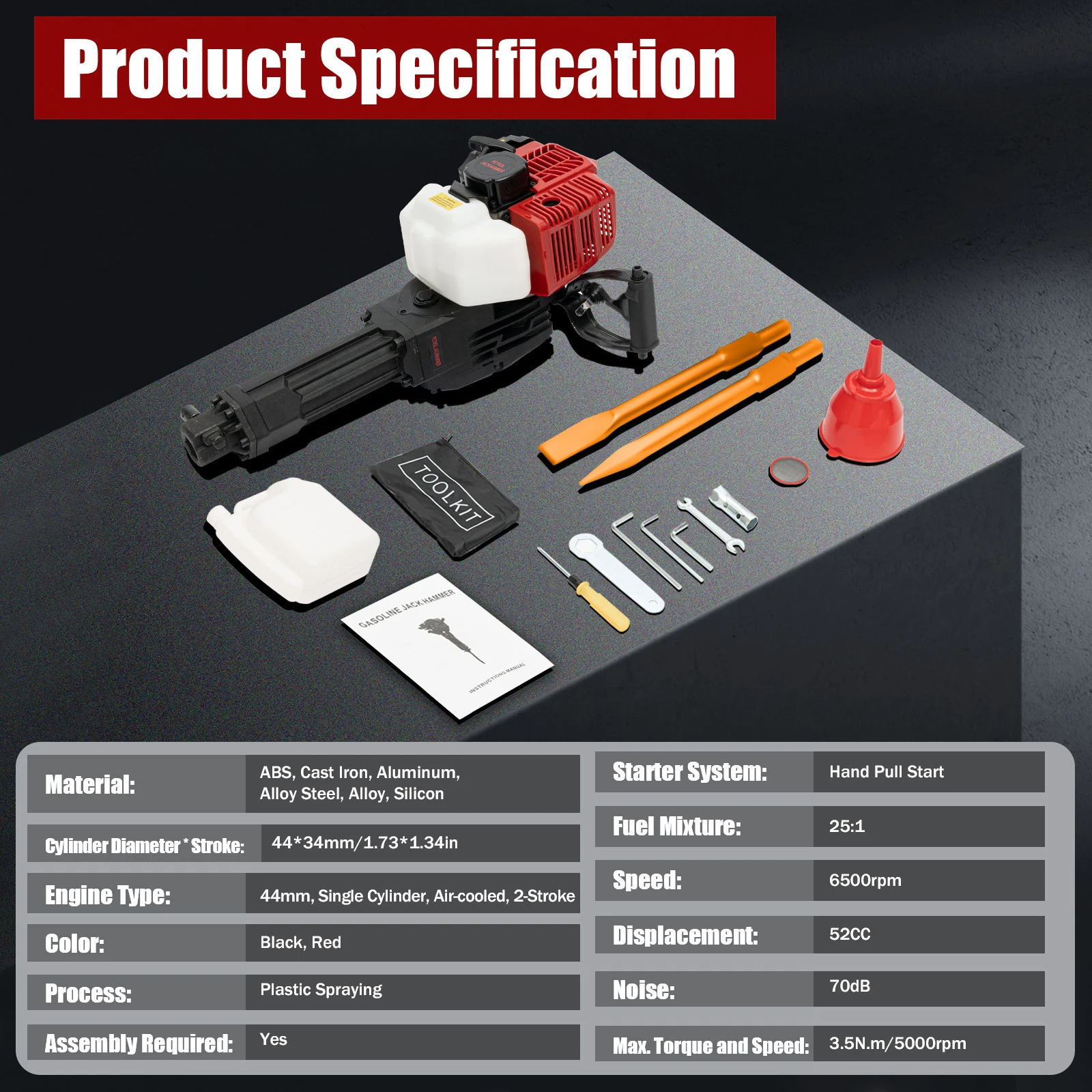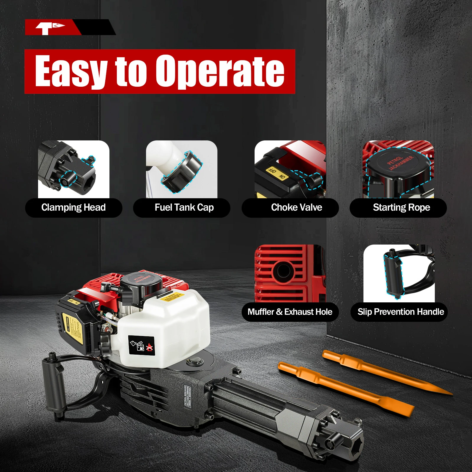 Low Noise: Compared with other jack hammers, it has a muffler, which can effectively reduce noise during operation(70dB). It is very suitable for places that require less interference during working.