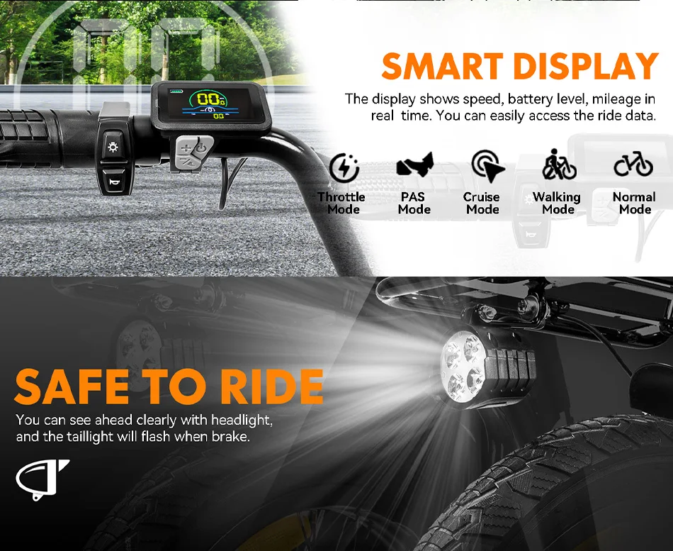 【Strong Grip to Keep Your Safe】ZOONLAI City electric bike With 20"x 3" fat tires, it can traverse all sorts of terrain, including mountains, snow, beach, rocky roads, and even urban jungles. Even in extreme weather conditions, safer and more reliable driving can be achieved.