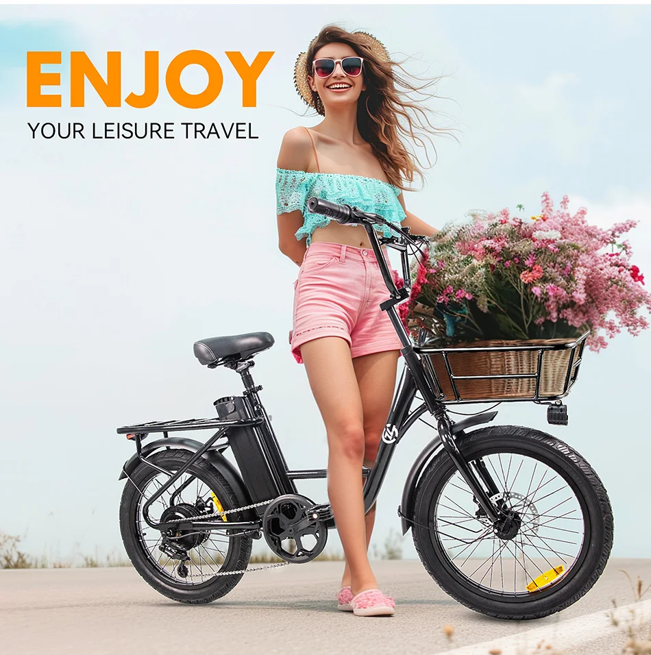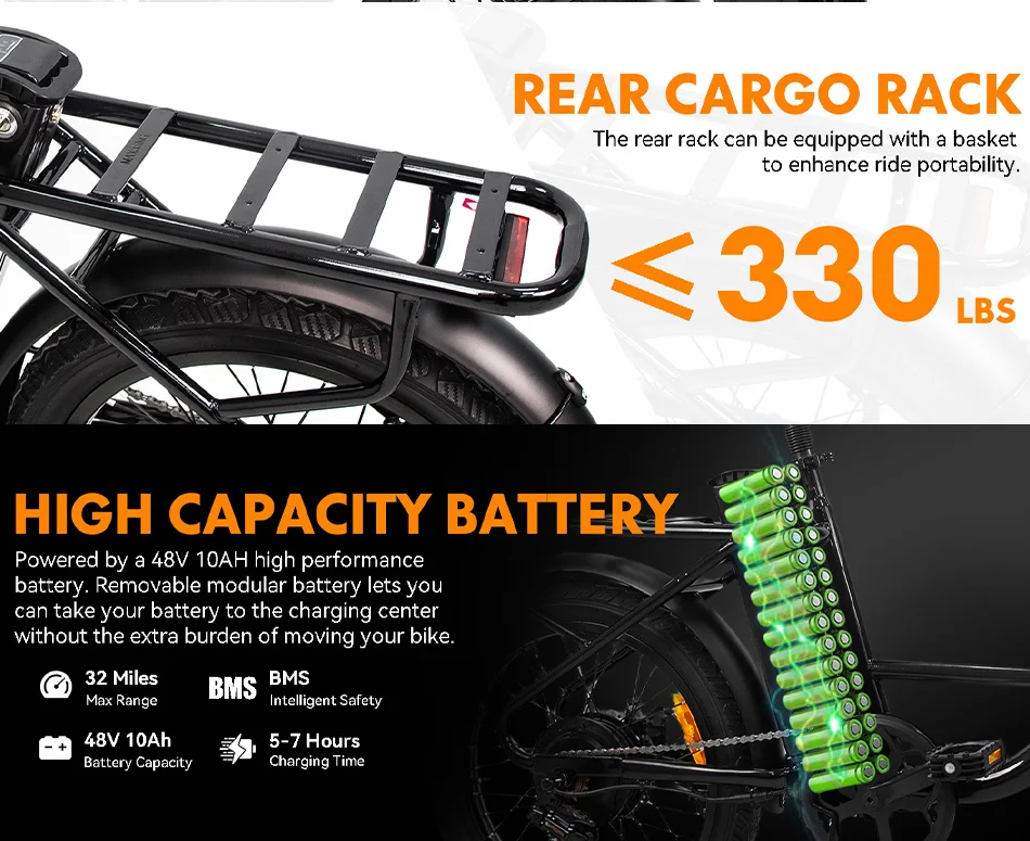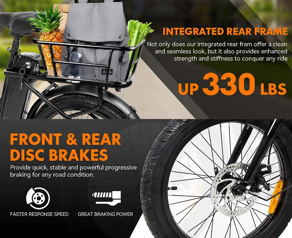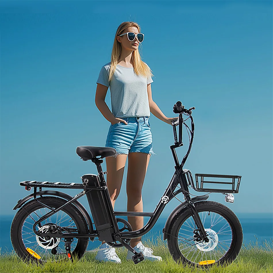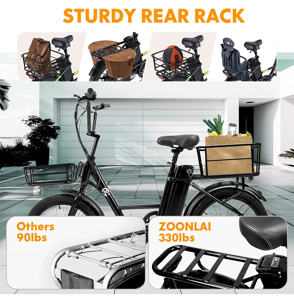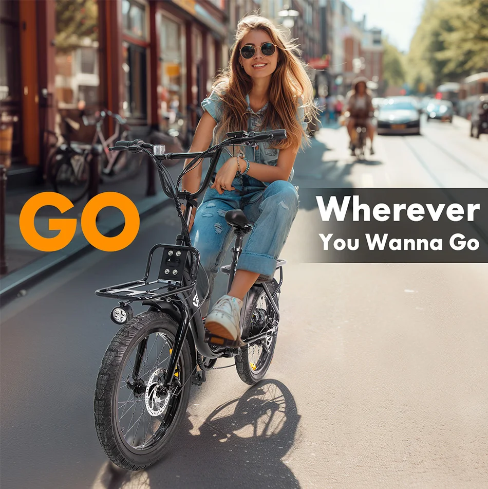750W Electric Bike for Adults, Cargo Step, 48V 499.2wh Battery, 20" Fat Tire Electric Bicycle with Rear Rack,Hydraulic Disc Brak