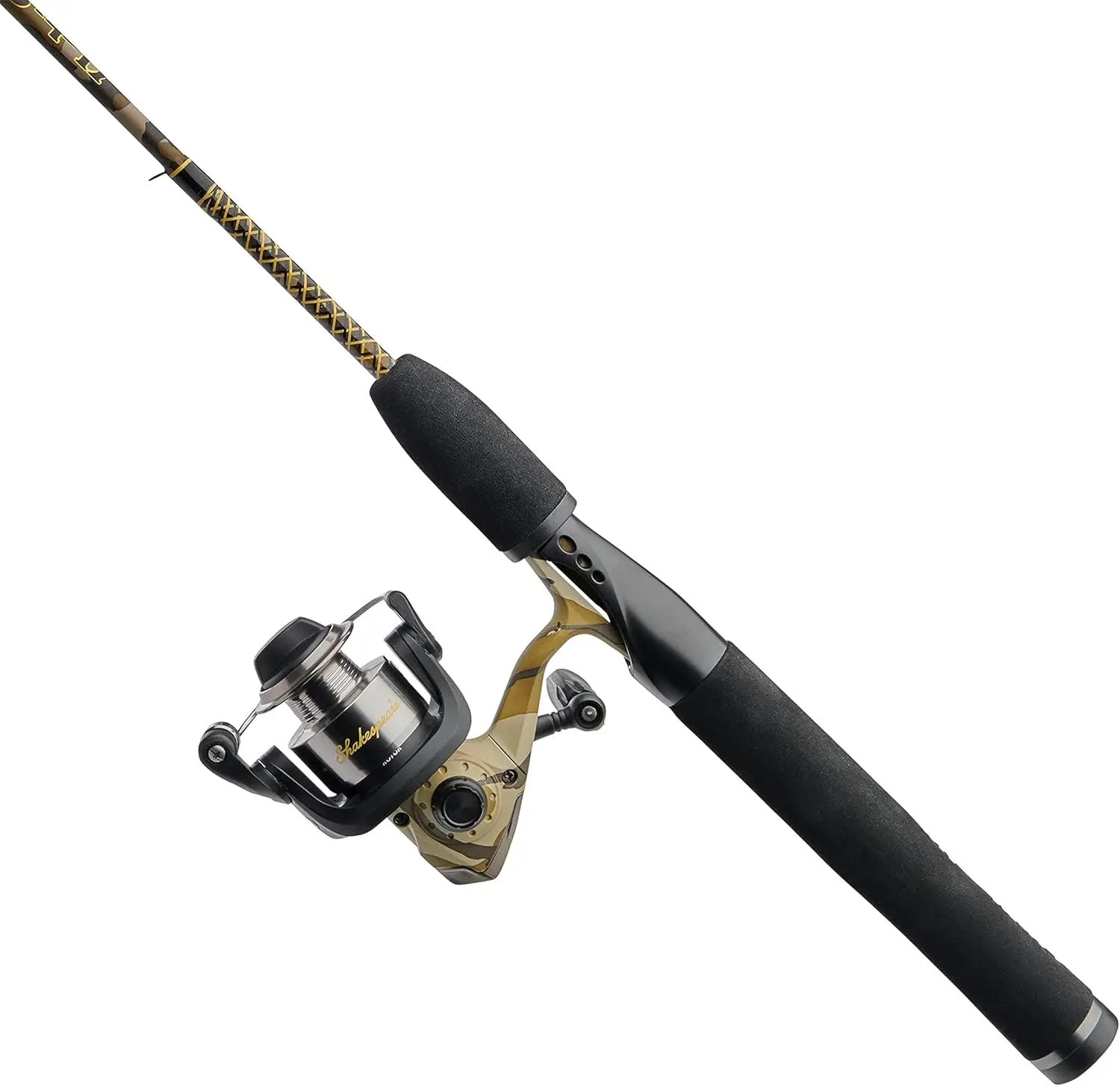 Enhance your fishing experience with this durable and versatile camo spinning reel and rod combo. Designed for reliability and performance, it's perfect for anglers seeking a strong yet sensitive setup. Key Features: - **Durable Construction**: The rod features a blend of graphite and fiberglass in a two-piece design, offering strength and sensitivity to detect subtle bites while maintaining durability against rough handling. - **Smooth Operation**: Equipped with a size 20 spinning reel that includes a 2-ball bearing system for seamless casting and retrieval, along with an instant anti-reverse system to keep you in control during fights. - **Enhanced Durability**: Six reinforced guides are built to withstand tough conditions, preventing insert pop-outs and ensuring long-lasting use on various fishing trips. - **Comfortable Handling**: Lightweight EVA handles provide a comfortable grip, suitable for both right-handed and left-handed users, reducing fatigue during extended sessions. - **Versatile Performance**: With a line rating of 6-15 lbs and medium power, this combo is ideal for targeting a range of fish species. The clear tip design enhances sensitivity without compromising strength. - **Ample Line Capacity**: The ported aluminum spool offers generous mono capacity options: approximately 190 yards for 4 lb line, 140 yards for 6 lb line, or 110 yards for 8 lb line (metric equivalents: about 175 meters for 0.20 mm, 130 meters for 0.23 mm, or 100 meters for 0.25 mm). This combo comes with a reliable warranty on the rod, ensuring peace of mind for years of fishing adventures. Whether you're a beginner or an experienced angler looking to upgrade your gear, this set provides excellent value and functionality in an attractive camo pattern that blends into natural environments.