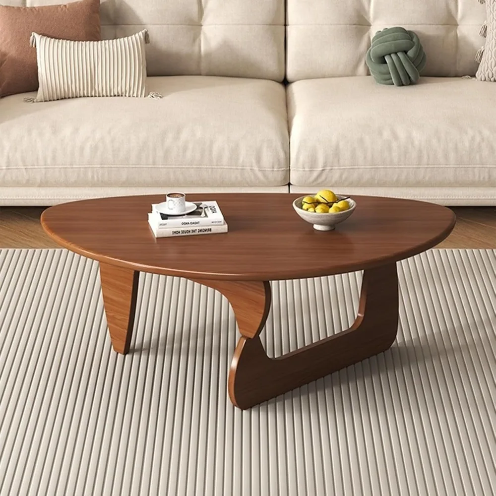 Coffee Table, Mid Century Modern Triangle Coffee Table for Living Room, Rustic Solid Wood Legs and Tabletop, Farmhouse Walnut.