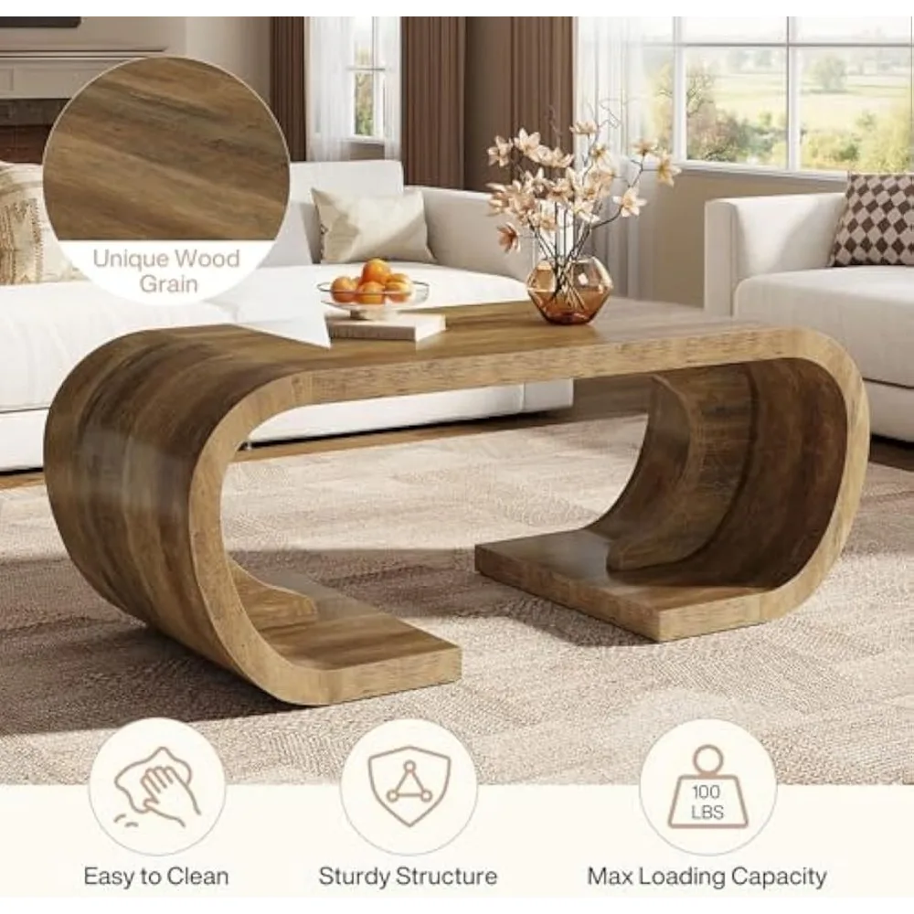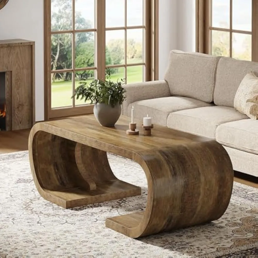 • Iconic Curved Design: Inspired by ocean waves, this wooden coffee table adds artistic flair to any room. Its curved design draws attention like a museum piece, making your space feel curated and complete