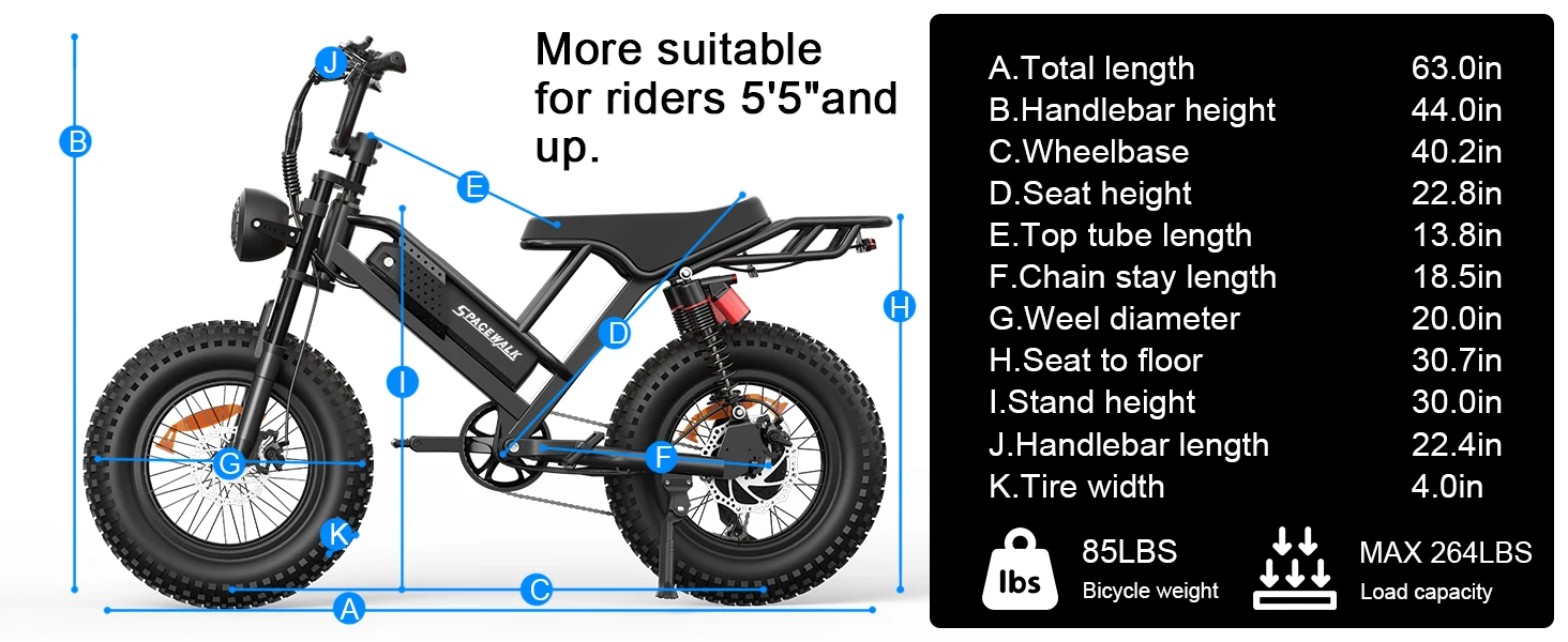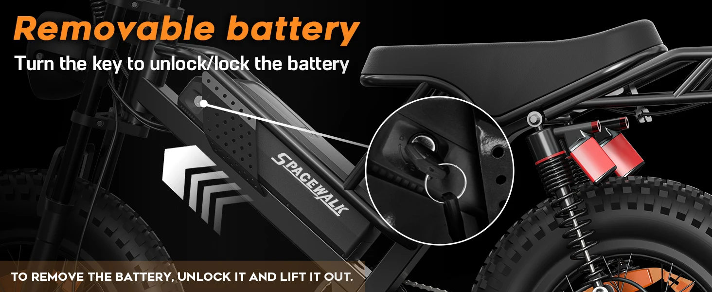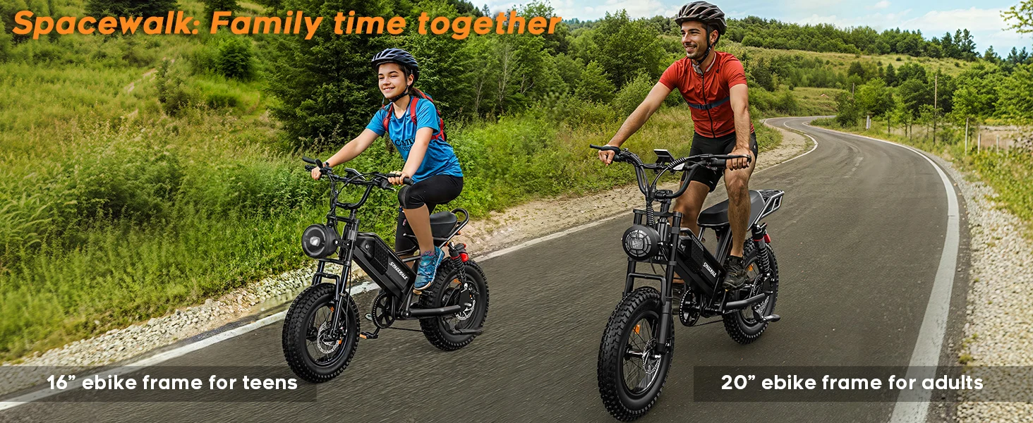 Spacewalk Mountain Electric Bike , 20" Fat Tire Ebike, Wider Seat 750W Peak Motor, Removable Battery, 4X Suspension Ebike