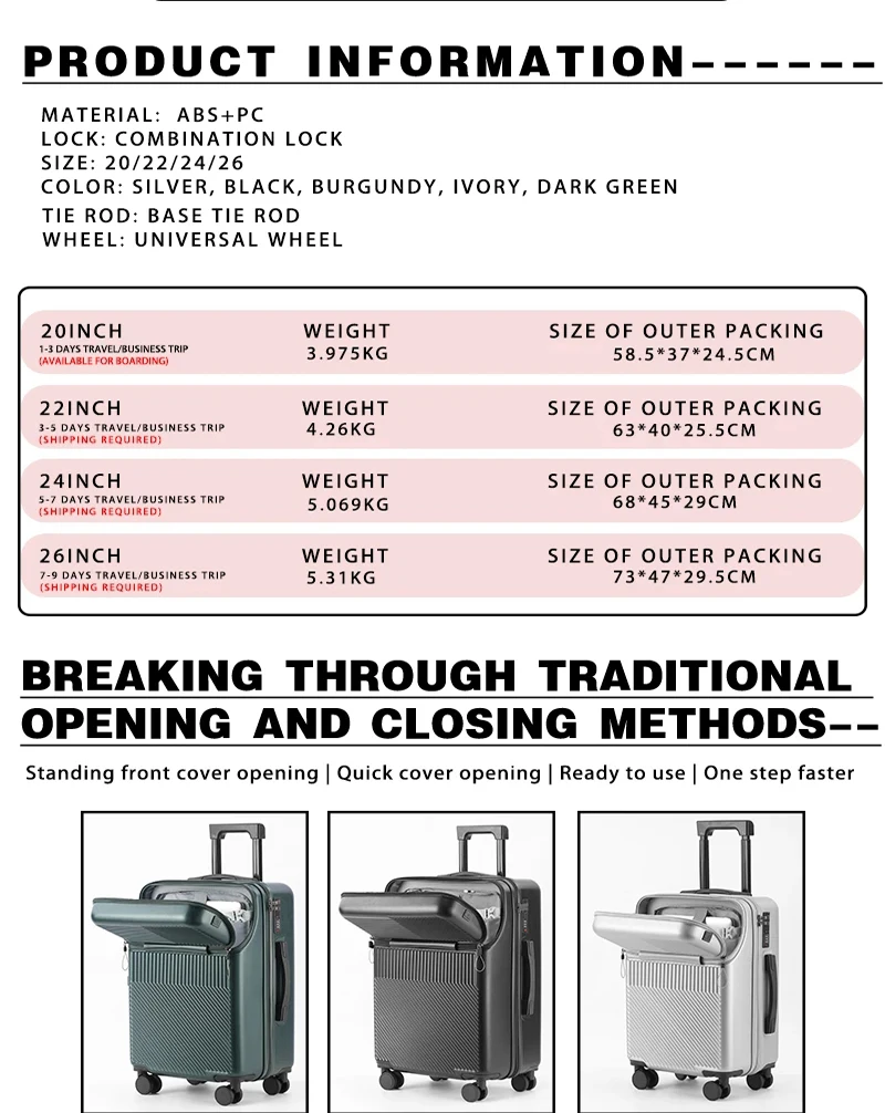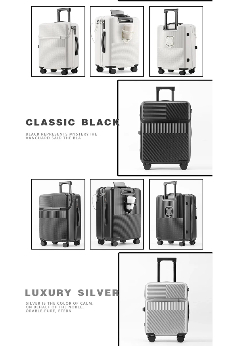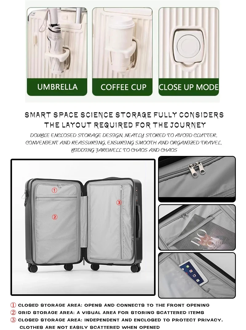Suitcase Luggage Stylish Business Suitcase with Cup Holder Compact 20-inch Lightweight Carry-on