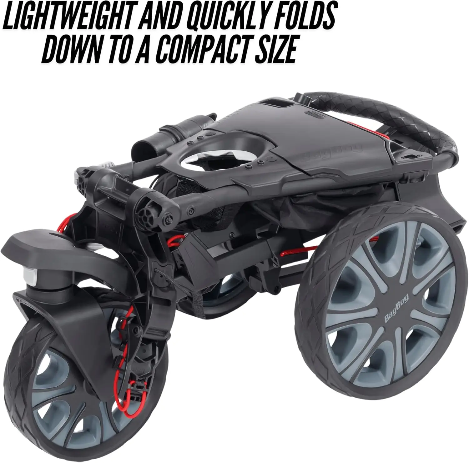 LIGHTWEIGHT AND COMPACT DESIGN: Weighing 28.6 lbs, this battery powered golf push cart is lightweight and quickly folds down to a compact size of just 29” x 16.5” x 14.5”, making it easy to store in cars and lockers and transport from home to the links